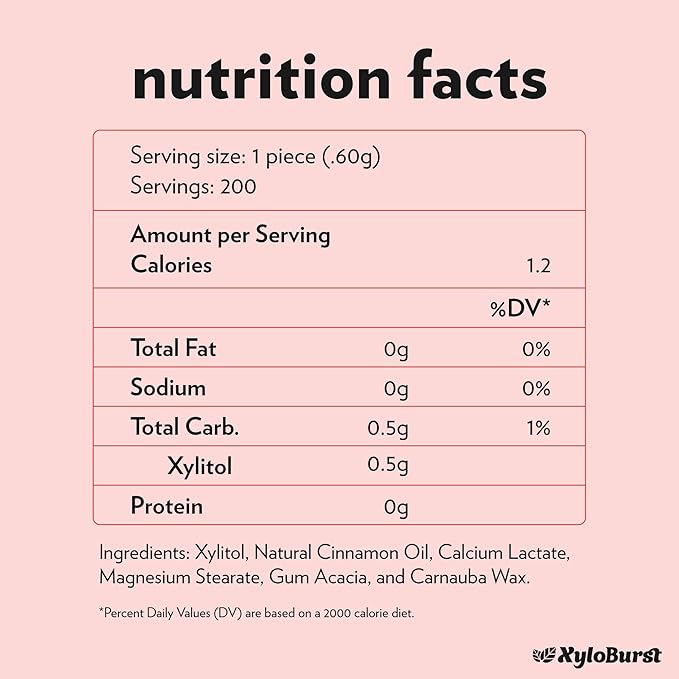 - BOOST ORAL HEALTH - XyloBurst sugar free mints provide an easy way to reach the recommended 6 to 8 grams of xylitol daily, promoting healthier gums and teeth, leading to fewer cavities and a brighter smile.