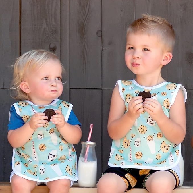 BapronBaby Cookies & Milk Bapron - No Neck Tie Safer Bib for Baby & Toddler - Soft Waterproof Stain Resistant - Machine Washable - Sz Preschool 3-5yrs