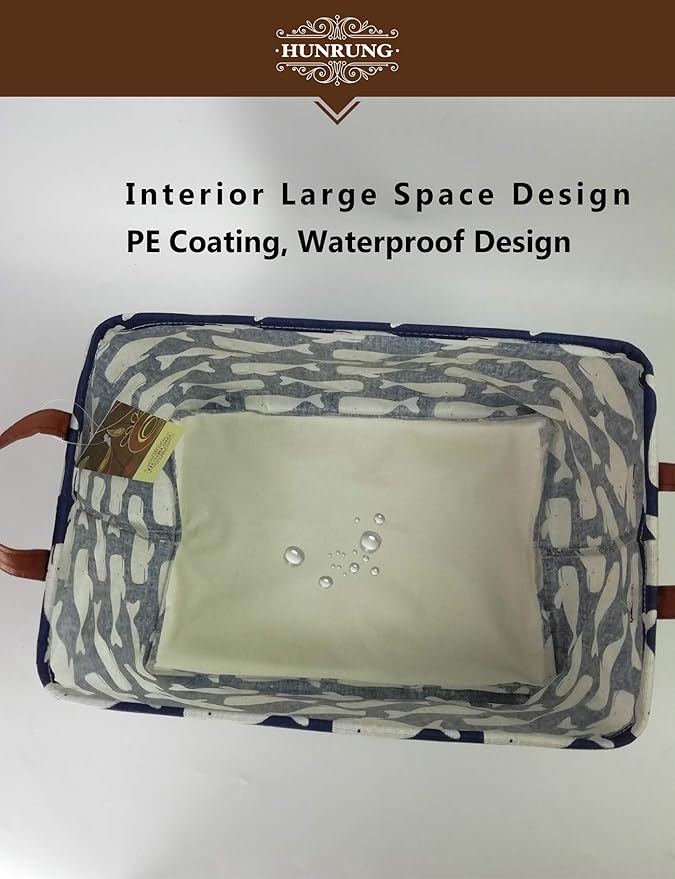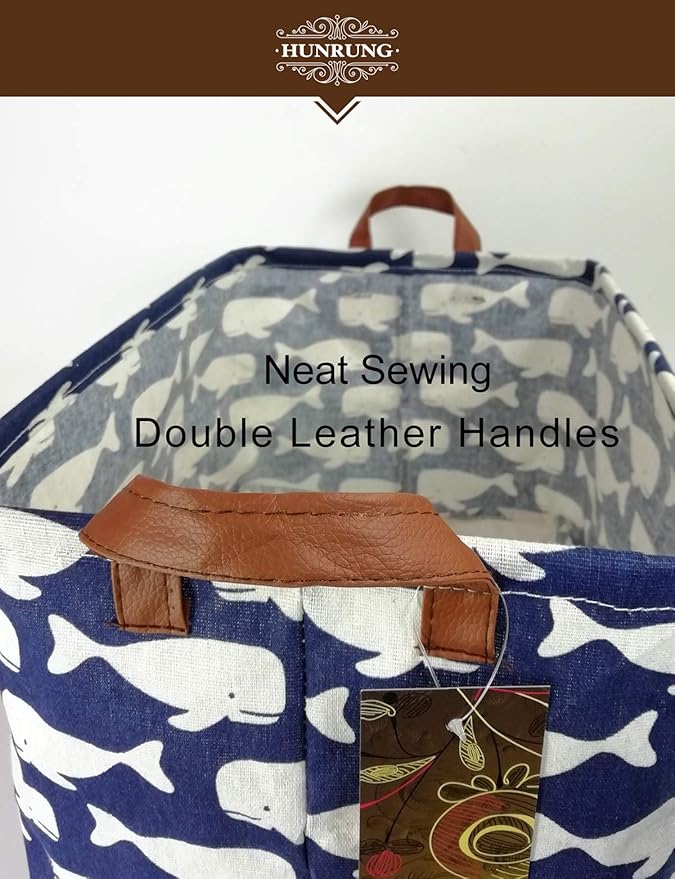 HUNRUNG Rectangle Storage Basket Cute Canvas Organizer Bin for Pet/Children Toys, Books, Clothes Perfect for Rooms/Playroom(whale)