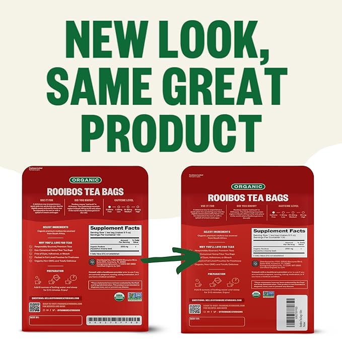 FGO Organic Rooibos Tea, 100 Count, Eco-Conscious Tea Bags, Caffeine Free, Packaging May Vary (Pack of 1)