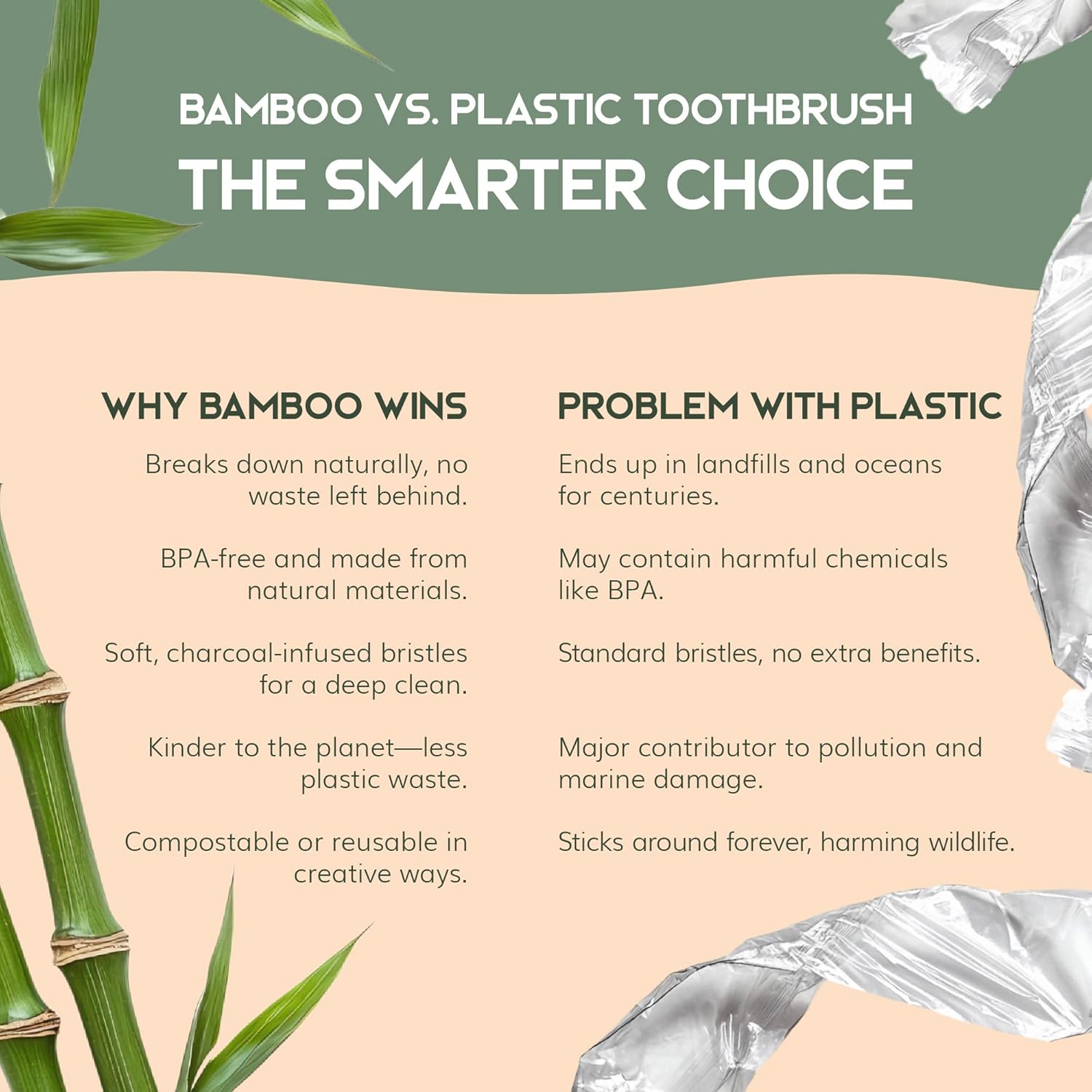 - Organic Bamboo Toothbrushes. Our Greenzla adult bamboo toothbrushes are made from organic bamboo for a clean, eco-friendly brushing. Our wooden toothbrushes are a smart plastic free toothbrush choice for your tooth brush pack and bathroom essentials.