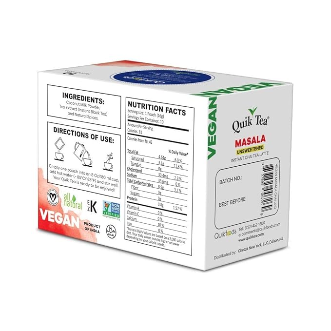- Flavor : Vegan Masala Unsweetened