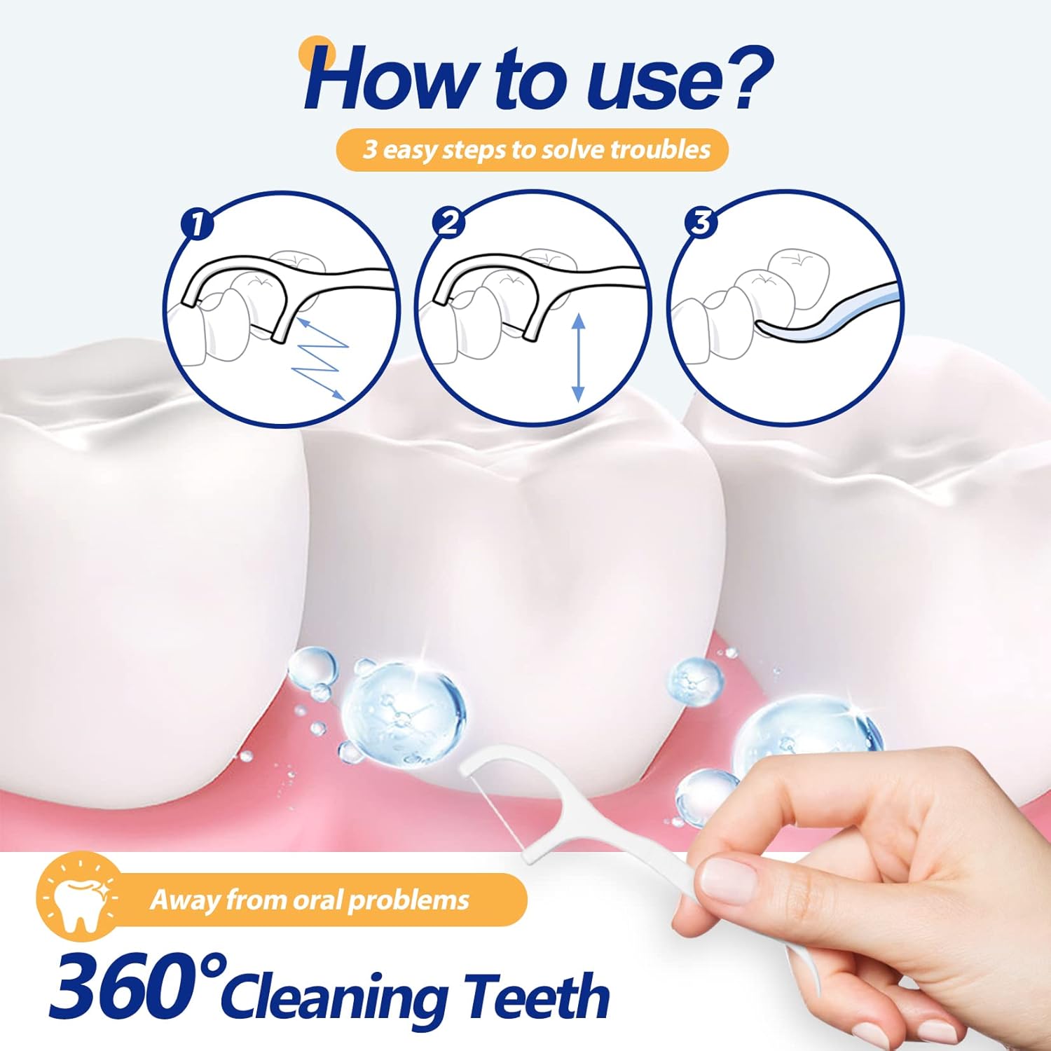 - 2-IN-1 FUNCTION:The tooth floss picks can pick out unwanted left overs, remove plaque where your toothbrush can't reach, helping to fight tooth decay and keep your teeth clean. It can be used as inter-dental brush or toothpick, deeply cleaning between teeth and gums.