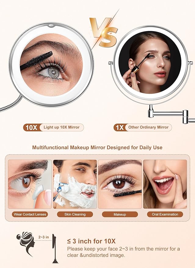 - 10x Magnification - 10x magnifying makeup mirror for facial details enlarging, helping you achieve flawless makeup