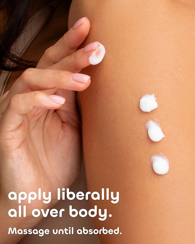 - How to use: Apply liberally all over body, including arms, neck and thighs, massaging until absorbed. Use daily.