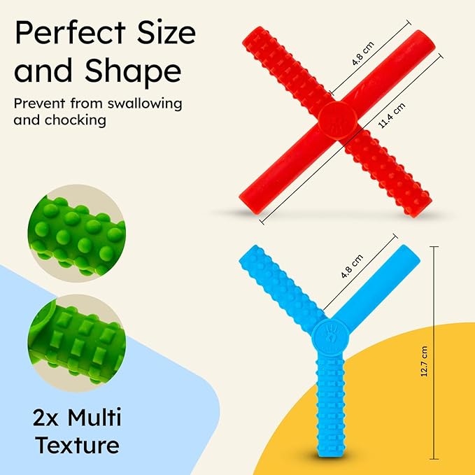 - REDUCES ANXIETY & PROMOTES CALM – These sensory chew toys provide a safe, effective way to manage stress and anxiety for children with autism, ADHD, and sensory processing needs. Designed to help kids stay focused and calm, these chewy sticks for sensory kids serve as an excellent alternative to chewing on fingers, clothing, or other non-safe items. Perfect for school, home, or travel, these chew toys for kids with autism encourage self-regulation and comfort.