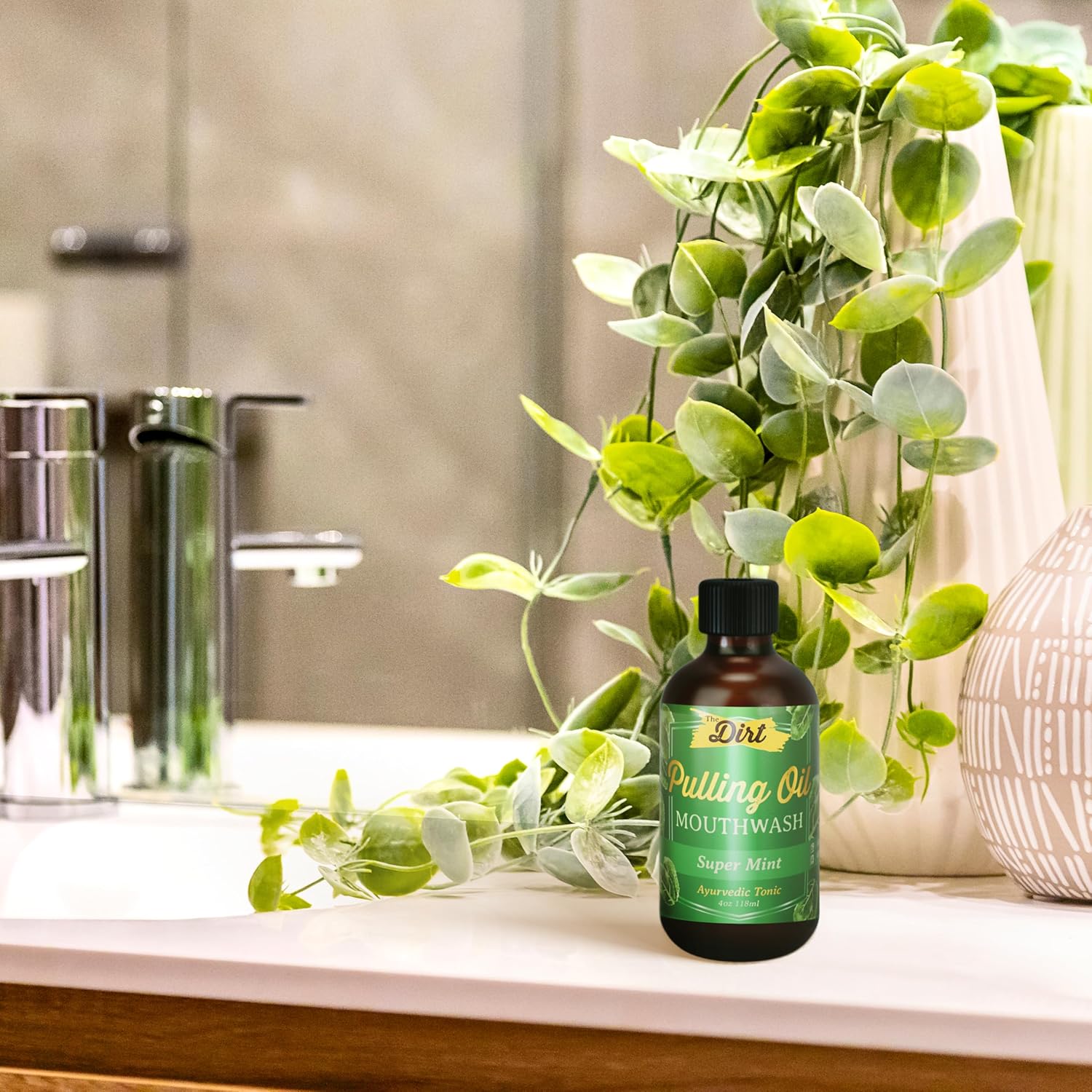 - 👌🏻 EASY TO USE: The Dirt Oil Pulling Mouth Freshener can be use as a daily mouth cleaner. Just pour swishing oil into cup, then rinse for 1 to 2 minutes after you brush and floss. Use toothbrush and tongue scraper to clean your tongue. It helps provide a healthier mouth, fresher breath, & improved gum care.