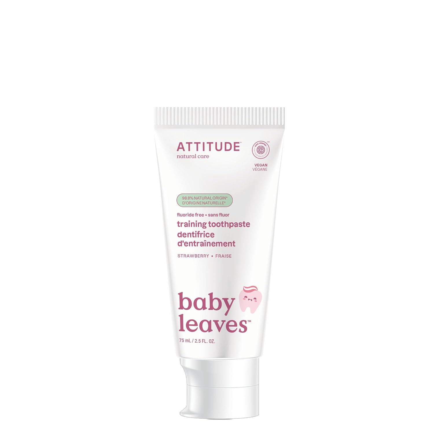 ATTITUDE Baby and Child Fluoride-Free Training Toothpaste, EWG Verified, Naturally Derived Ingredients, Vegan, Strawberry, 2.6 Oz