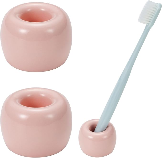 Mini Ceramic Couple Toothbrush Holder, Hand-Made Bathroom Toothbrush Holder, Electric Toothbrush Head Holder and Office Pen Holder 2-Piece Set (Pink)