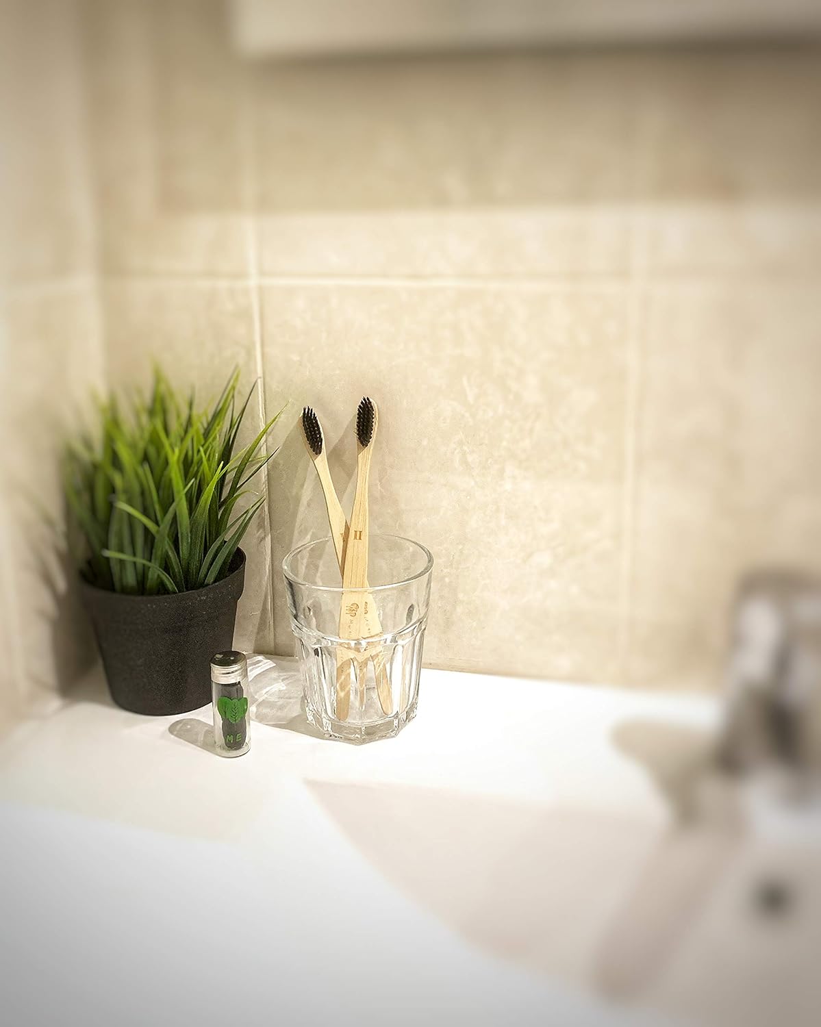 Vegan Biodegradable Bamboo Charcoal Dental Floss with Refillable Glass Container | Free Refill | Natural Candelilla Wax | 30M x2 | Peppermint Essential Oil | Eco Friendly Zero Waste Oral Care
