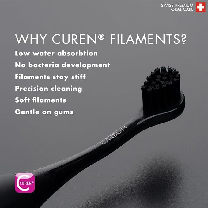 Curaprox Black is White Hydrosonic Toothbrush – Teeth Whitening and Gum Care | Ultra-Gentle Cleaning with Carbon Brush Heads | Set with Charger and Travel Case