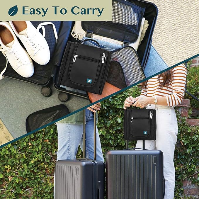 - PADDED MAKE UP BAG CASE: The toiletry case bag for men has foam padding that protects toiletries container, shampoo bottle during flying, roadtrip, and plane. The toiletry bag kit also has elastic bands that secure makeup brush, face spray, lipstick, shaving razors. One waterproof compartment for wet toiletries. This large hanging toiletry bag holder for women will protect all gear, cosmetics, and travel gadgets.
