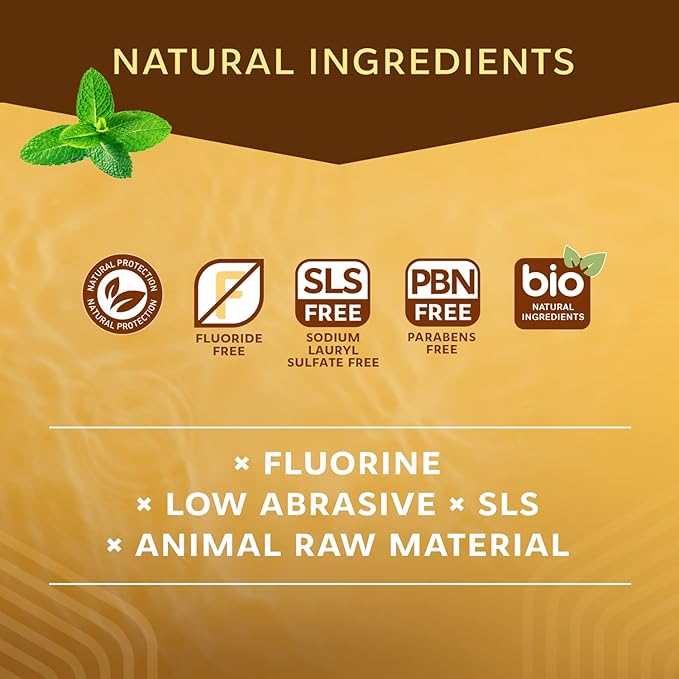 - The toothpaste contains Vitamin E that ensures antioxidant protection, Xylitol that protects against bacteria and normalizes the microflora composition, and silica microparticles that gently remove staining, giving the teeth a whiteness and shine.