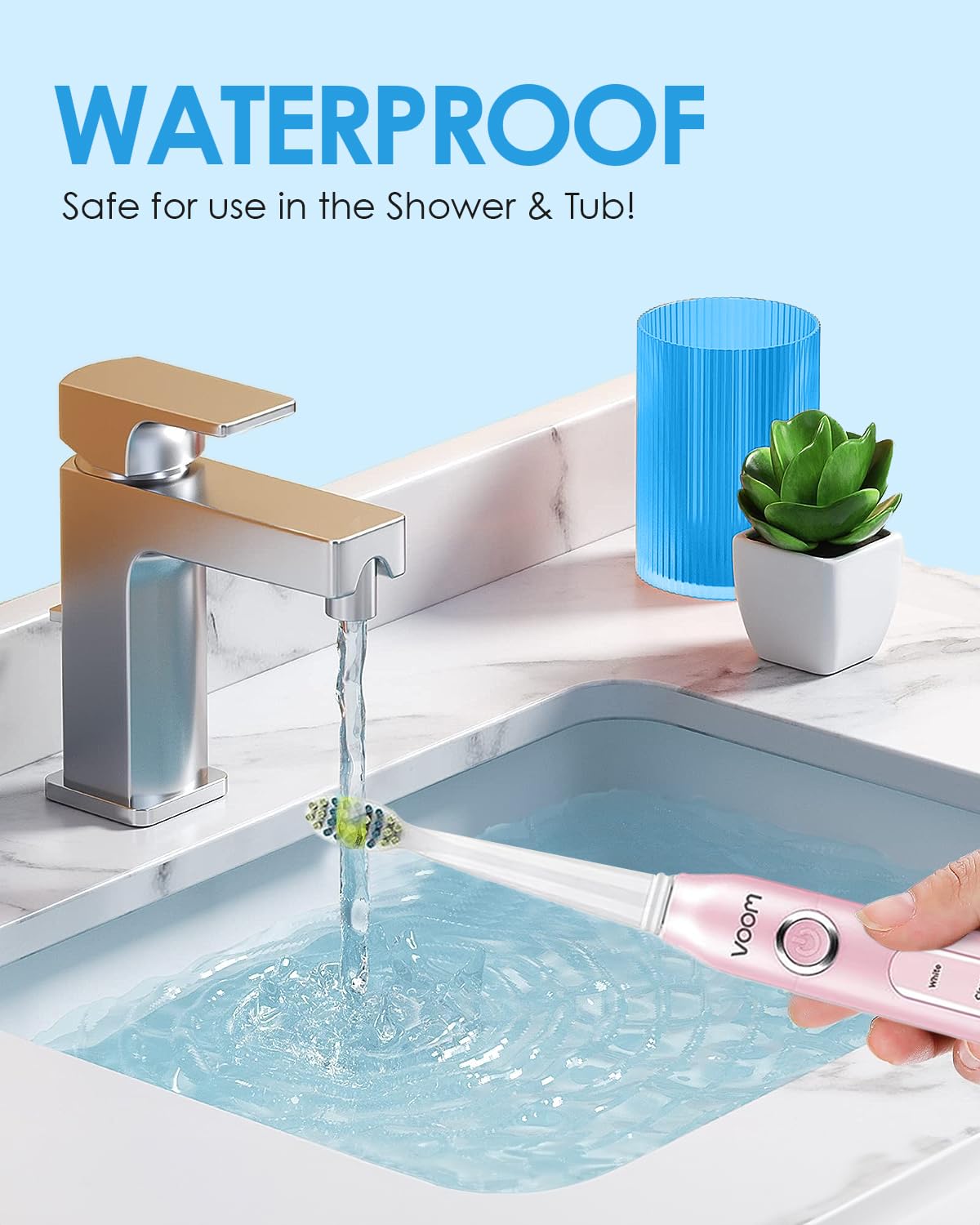 - Dentist Recommended: Our 2 Mins Timer w/ IPX7 WaterprooSonic toothbrush has a built-in timer that pulses every 30 seconds, which helps ensure the dentist-recommended brushing habits. Additionally, it has an IPX7 waterproof design, allowing users to safely use the power toothbrush while showering or bathing.