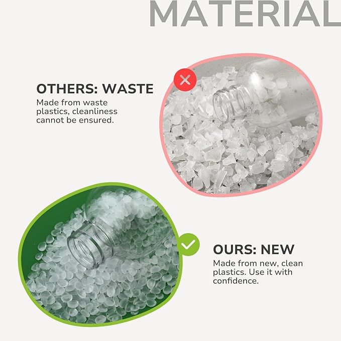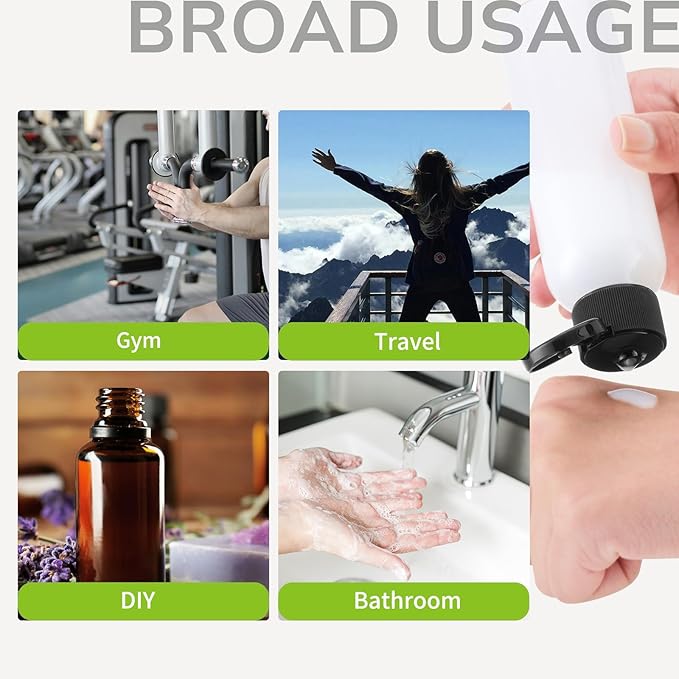 - 【TRAVEL SHAMPOO BOTTLES】Engineered for maximum leakproof performance, each empty bottle features a secure screw top and flip cap closure. Safely store shampoo, conditioner, hand sanitizer, or mouthwash without spills. Made from durable, BPA free PET plastic, built to last trip after trip.