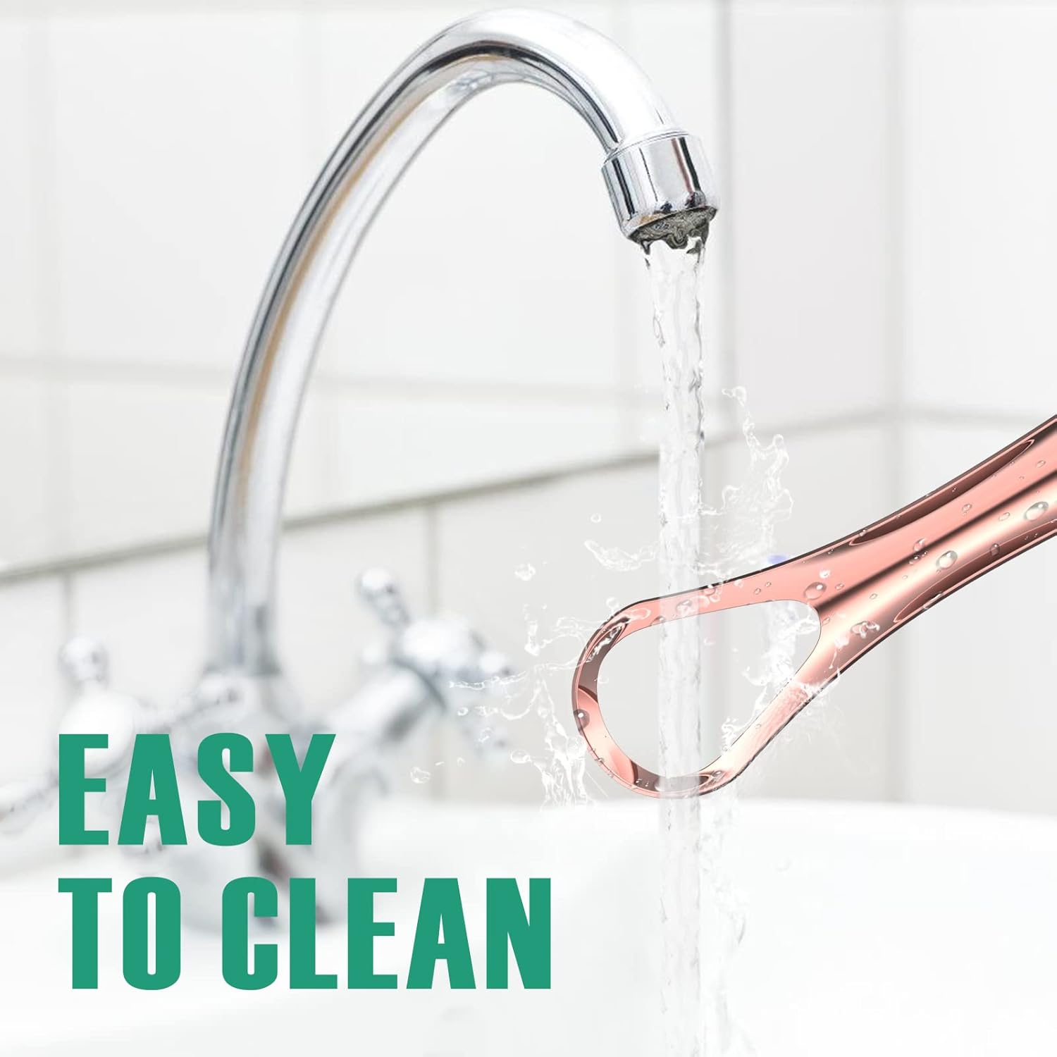 - Metal Tongue Scraper: Our tough scrapers are made of high quality stainless steel that won't rust and last a long time. It is more hygienic, more environmentally friendly and more economical than the plastic tongue scraping brushes on the market. Ergonomically designed tongue scraper.Only one-handed operation is required. Simply wash the tongue scraper after each use with warm water.