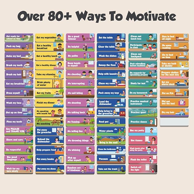 - Unlock Their Potential - Boost your child's motivation with an interactive responsibility chart, featuring tactile 3D stars and 80+ diverse chores from potty training to household tasks. Engage, reward, and celebrate their accomplishments!