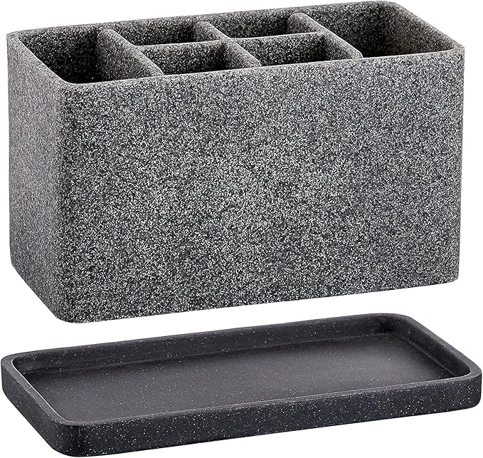 - Heavy And Durable: The bathroom sink organizer is made of quality resin, heavy and thick, never tip over and won’t break easily. Attractive granite look made it a good addition to your counter