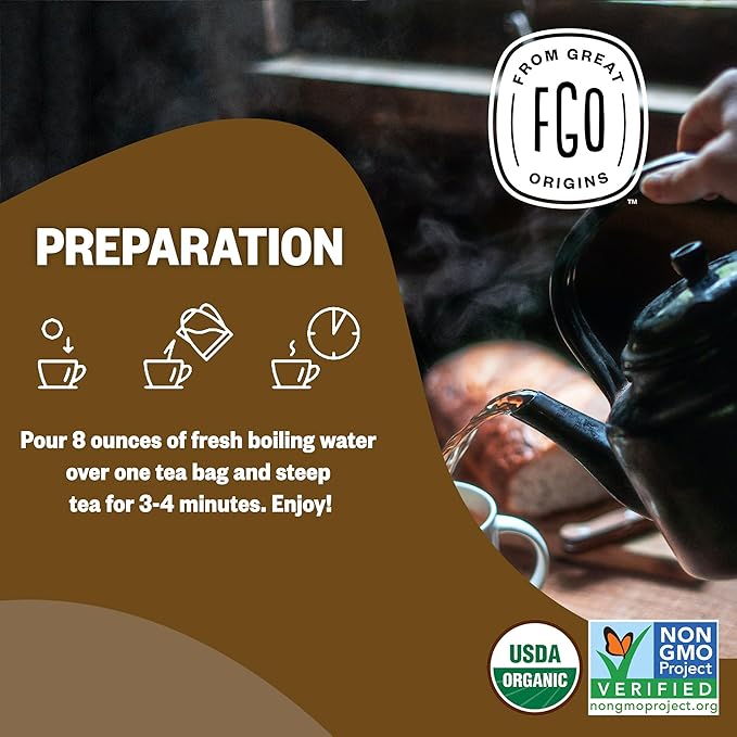- ORGANIC PU'ERH TEA - The tea is blended, filled into tea bags and packed into foil-lined kraft bags in California