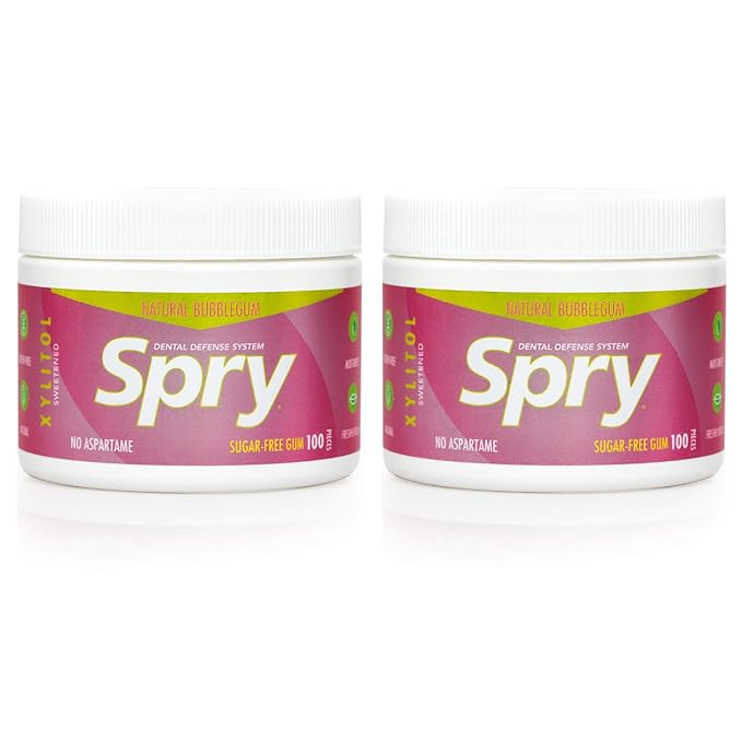 Spry Fresh Natural Xylitol Chewing Gum Dental Defense System - Aspartame-Free, Sugar-Free, Non-GMO, Gluten-Free (Bubble Gum, 100 Count - Pack of 2)