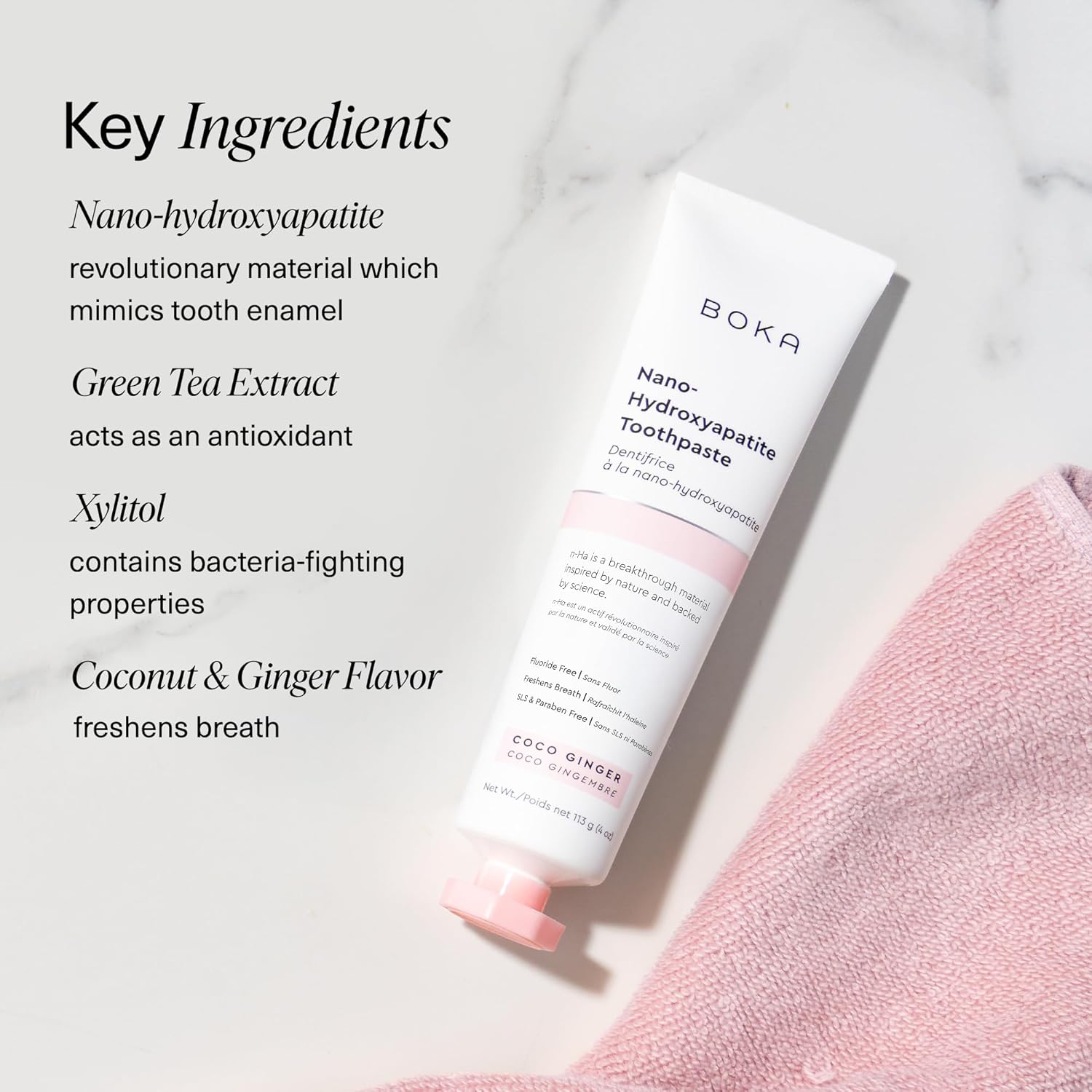 Boka Fluoride Free Toothpaste, Nano Hydroxyapatite Toothpaste, Appropriate for Sensitive Teeth - for Adult, Kids Oral Care - Coco Ginger Flavor, 4 Fl Oz 1Pk US Manufactured