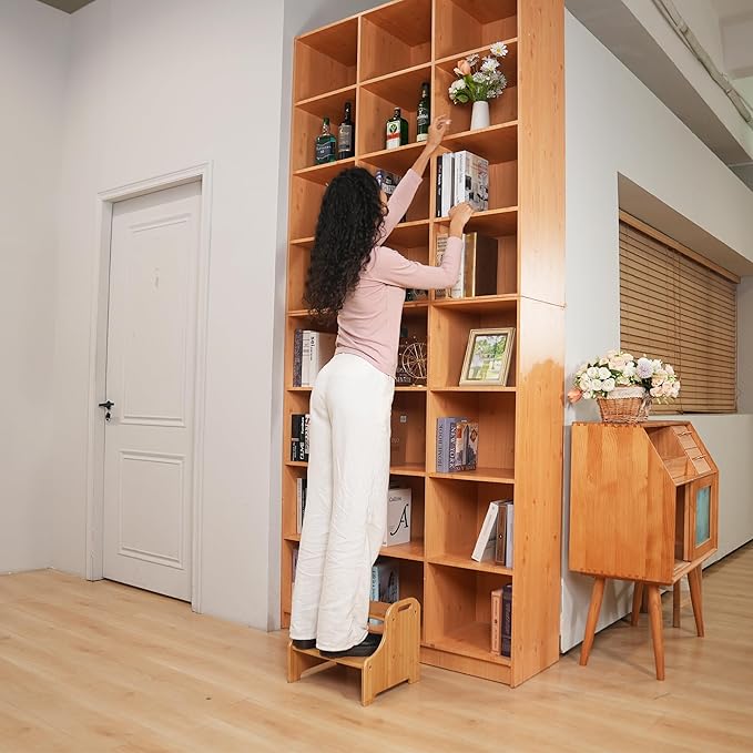 VaeFae Bamboo 2 Step Stool with Non-Slip Step Treads and 2 Cutout Handles