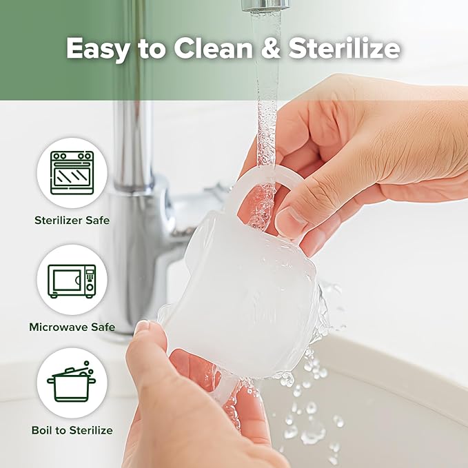 - CLEAR SILICONE = CLEANLINESS YOU CAN SEE:The fully transparent silicone lets you spot milk residue or dirt at a glance, helping parents maintain better hygiene with every use—because a clean cup means a healthier baby.