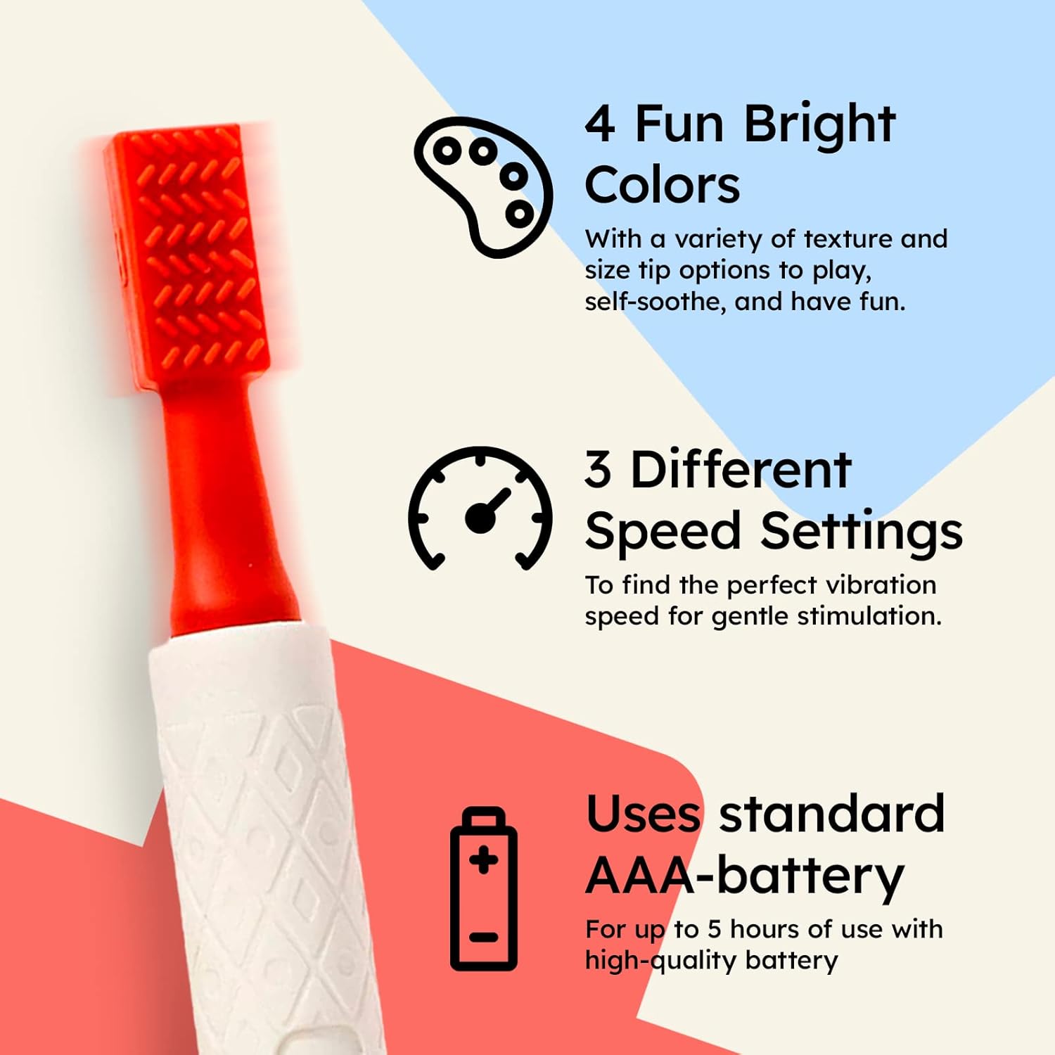 Gafly Therapens Oral Motor Therapy Tools Stimulate Speech and Feeding - Chewy Vibe Speech Therapy Toys Help Kids with Sensory Needs Chew & Relax - Oral Stimulator Kit Includes 4 Tips, Storage Pouch