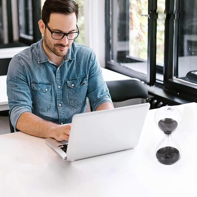 SuLiao Hourglass 60 Minute Sand Timer: 5.1 Inch Black Sand Clock, Large Sand Watch 60 Min, Unique 1 Hour Glass Sandglass for Kids, Games, Classroom, Home, Desk, Office Decorative