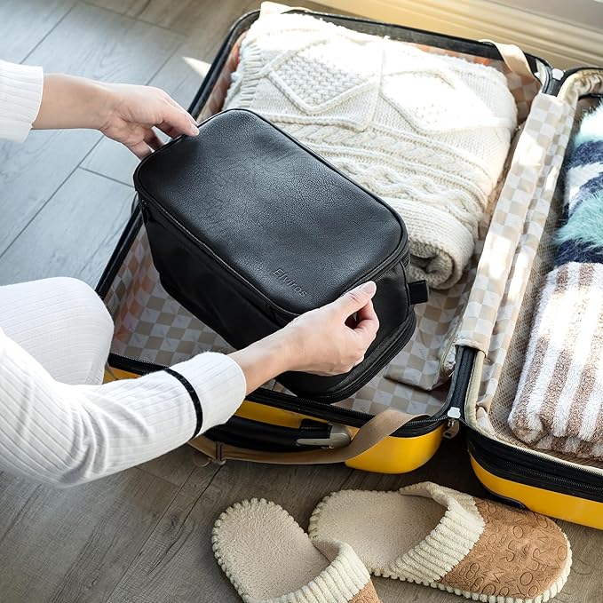 • WATER RESISTANCE STURDY MATERIAL: Exceptionally well built, the toiletry bag is made of PU leather, water-resistant nylon lining to keep moisture out of the bag. Premium zipper and reinforced seams are also implemented for long-lasting performance