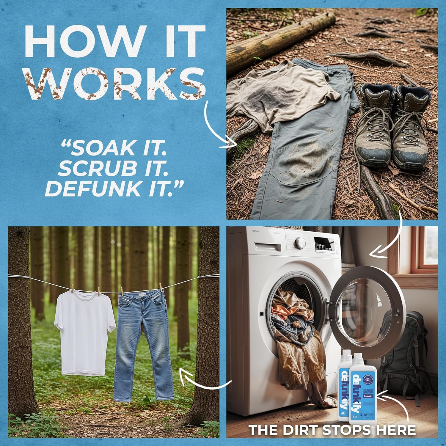 - 'šŖš®ššµ ššµš² ššš»šø š¢šš!' ššš®šæš®š»šš²š²: Defunkify's laundry detergent enzymes clean deep within fabric fibers to eliminate the residue, oils, sweat & heavy cover-up scents left behind by other washing detergents. As a clean, bright, fresh scented 'Fresh Air' laundry detergent w/ all natural odor eliminator & set-in stain remover ingredients, šš¼ššæ š°š¹š¼ššµš¶š»š“ šš¶š¹š¹ šÆš² š¹š¼š¼šøš¶š»š“ & š³š²š²š¹š¶š»š“ š¹š¶šøš² š»š²š š¶š» š® šš¶š»š“š¹š² šš®ššµ, š“šš®šæš®š»šš²š²š±
