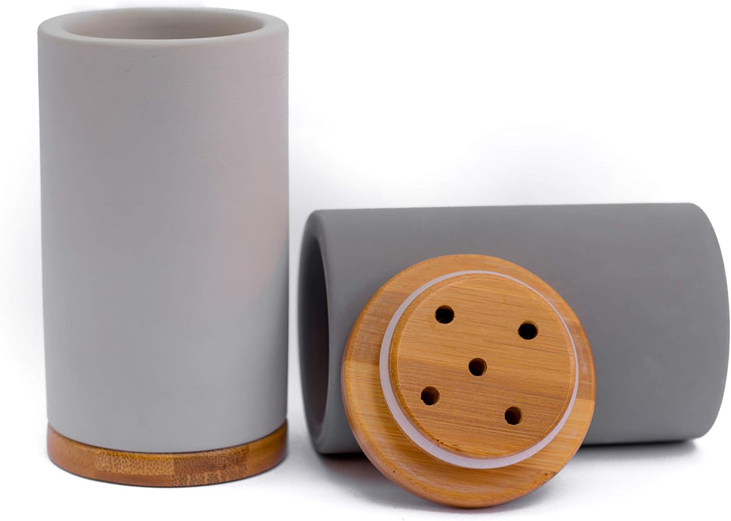 Matani Bamboo Toothbrush Holder Diatomite Tooth Brush Organizer - Storage Stand for Small Bathroom & Counter - Removable Base & Drain Holes, Water-Absorbent & Quick-Drying (Grey & Light Grey)