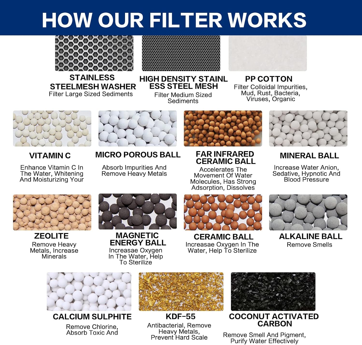 - 🚿【Upgraded 18 Stages High Output Shower Filter】 This updated shower head filter, with 18 stages of filtration layers, can provide all-around water purification for your shower