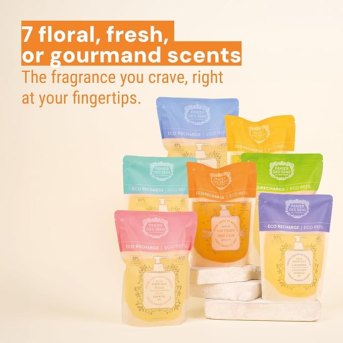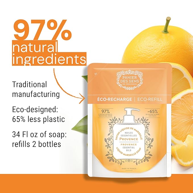Panier des Sens - Liquid Hand Soap Refills - Provence Foaming Hand Soap Refill - French Moisturizing Hand Wash with Coconut Oil - Kitchen & Bathroom - 97% Natural - 34 Fl.oz