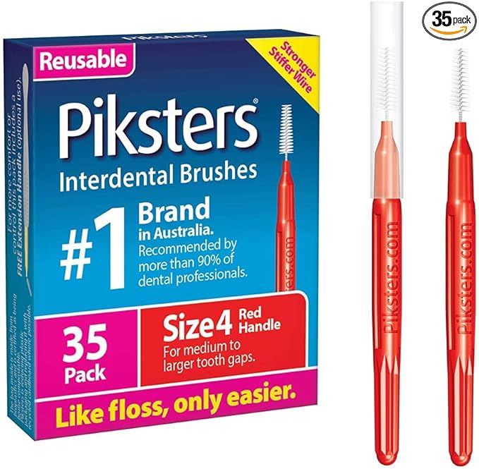 Piksters Interdental Brushes, 35 pk, Size 4, Interdental Tooth Brush for Medium Gaps, Gum Soft Bristles for Plaque Removal, Safe for Braces