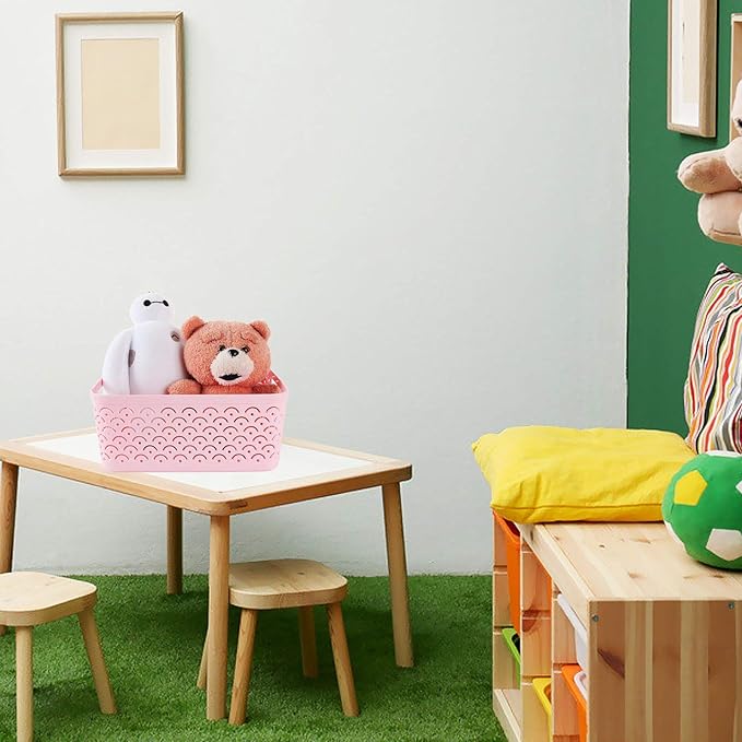 STARVAST 5 Pack Plastic Storage Baskets, Portable Pink Fish Scale Pattern Hollow Desktop Storage Bin Box with Handle for Kitchen, Bathroom, Kids Room or Nursery Storage – 9.4 x 7.1 x 4.1 inches
