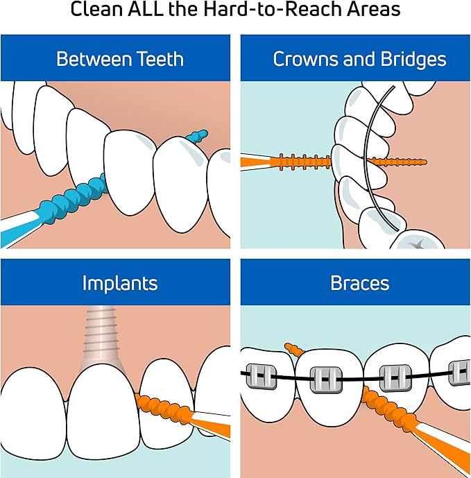 - SILICONE COATED DENTAL PICK: Soft and gentle dental picks for efficient plaque removal and easy cleaning between teeth. 12 pack of M/L blue brush teeth picks for small spaces.