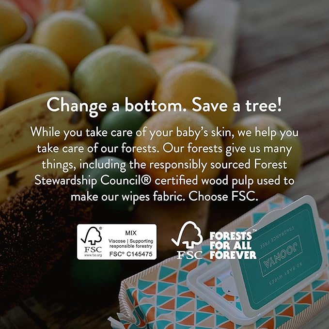 - EARTH-FRIENDLY, BIODEGRADABLE WIPES: Joonya's biodegradable wet wipes are also compostable. Our fragrance free baby wipes are made with FSC 100% certified viscose, a mark of sustainability that ensures wood used is sourced from responsibly forestry.