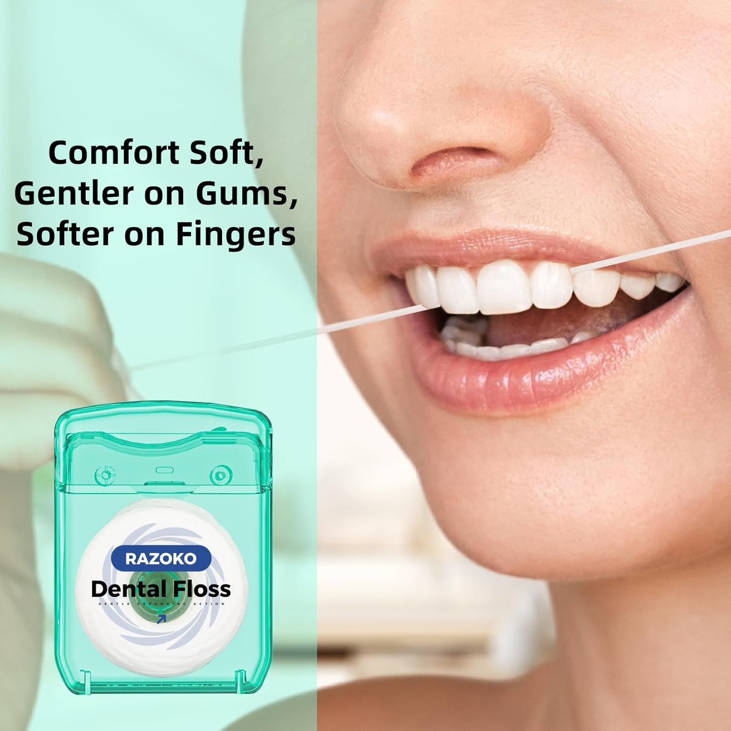 RAZOKO Coconut Oil Dental Floss Expanding Dental Floss Suitable for Wide Spaces (55 Yards, 4 Count) - Mint Flavor
