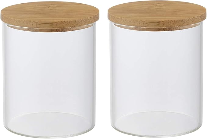 - Stylish Bathroom Storage Organizer: Clear glass cotton round holder with natural bamboo lids, and coordinating bamboo bathroom tray, adds touch of warmth and nature to your bathroom. Look so chic and cute, leaves everything neat and organized.