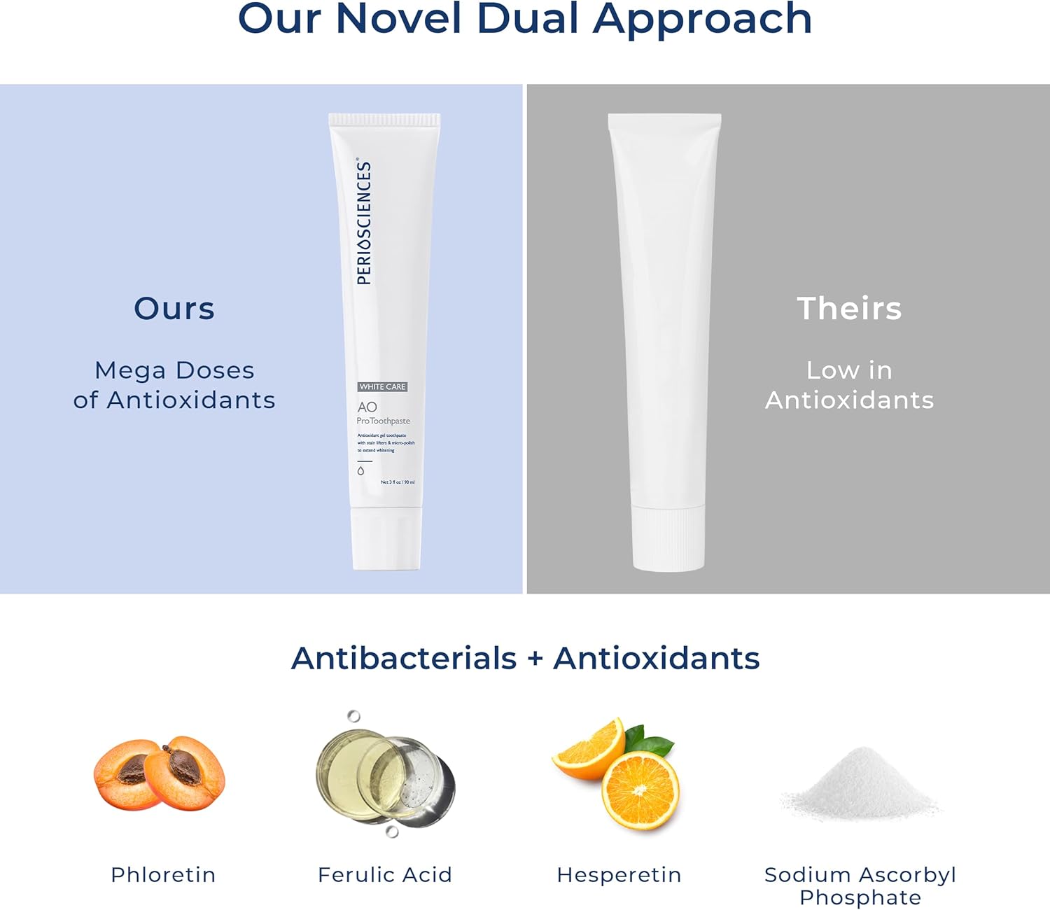 - Natural ingredients - The mint-flavored AO ProToothpaste is made using our signature antioxidants and botanicals such as Perilla Seed extract, grapefruit extract and nano-hydroxyapatite. The PerioSciences whitening toothpaste contains hesperetin, a flavonoid found in citrus fruits shown to provide potent antioxidant benefits.