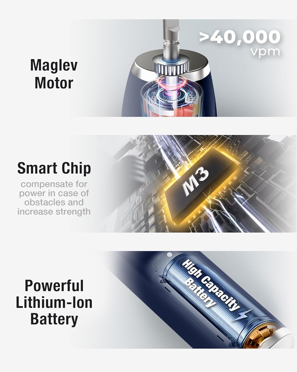 - 5 HIGH-PERFORMANCE BRUSHING MODES- Clean(gentle), White(strong), Polish(strong invert frequency), Milder(gentle invert frequency) and Sensitive(soft) to suit different conditions of teeth of gums, so you can choose different modes according to your preferences and dentist's recommendations.