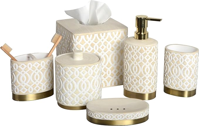 - VERSATILE SET FOR ANY BATHROOM STYLE: Whether your bathroom is modern, rustic, or boho, this 6-piece set blends seamlessly with various interior styles. A perfect upgrade for guest bathrooms, master baths, or dorm setups.