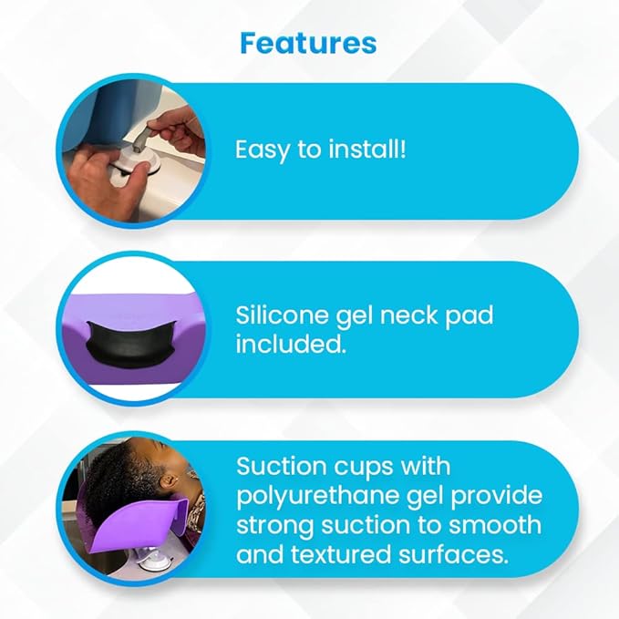 - PREMIUM QUALITY - Made of durable ABS plastic with polyurethane gel on 2 3/4" suction cups to attach to flat surfaces. Over time, if the gel gets less sticky - restore its stickiness by washing the suction cups with water and letting them dry. Includes a removable silicone gel neck pad.