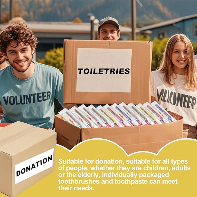 20 Pack Disposable Toothbrushes with Toothpaste and Comb for Homeless Individually Wrapped-Suitable for Hotel,Air Bnb,Shelter/Homeless/Nursing Home/Charity((20 pcs))