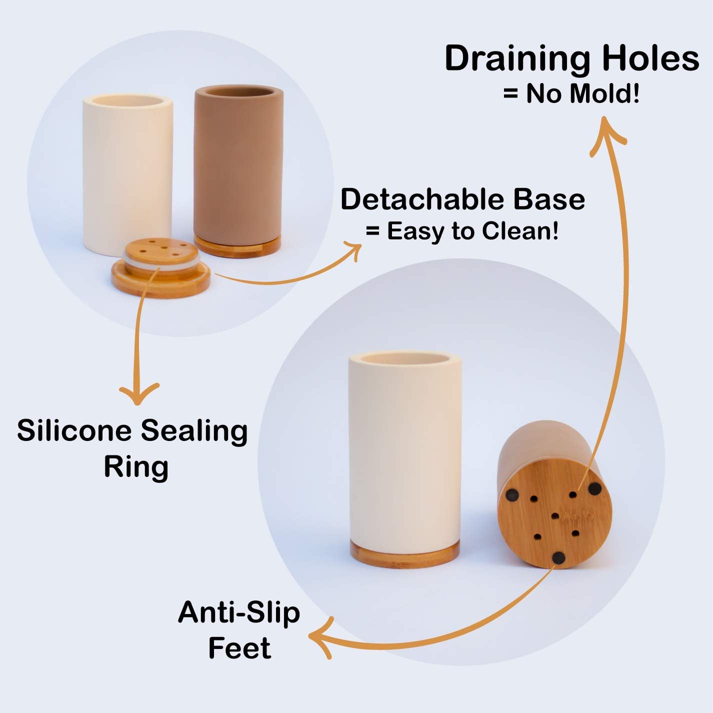 - Keeps Toothbrush Fully Dry in Between Uses: Made from natural Diatomite & Bamboo, our premium toothbrush stand quickly absorbs water from your toothbrush to keep it dry & clean when not in use!