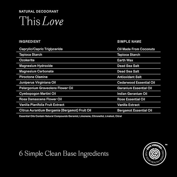 - This Love - This scent channels pure infatuation, and flower petals on the sheets. Meanwhile, plush tapioca starch and conditioning coconut oil give this sensitive skin deodorant a smooth glide.
