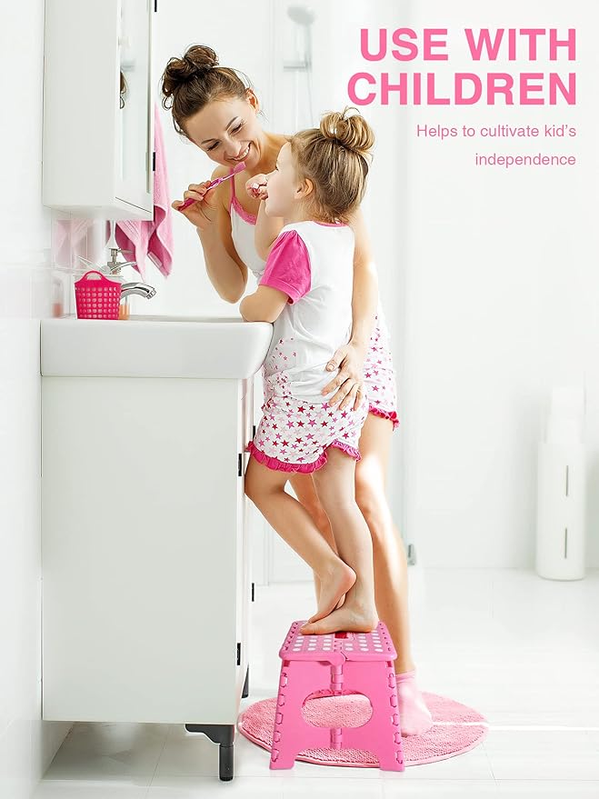 Dyforce Folding Step Stool 11", Durable Kids Step Stool, Heavy Duty Step Stools for Adults, Compact Foot Stools, Light-Weight Toddler Step Stools for Kitchen, Bathroom, Holds Up to 300 lbs (Pink)
