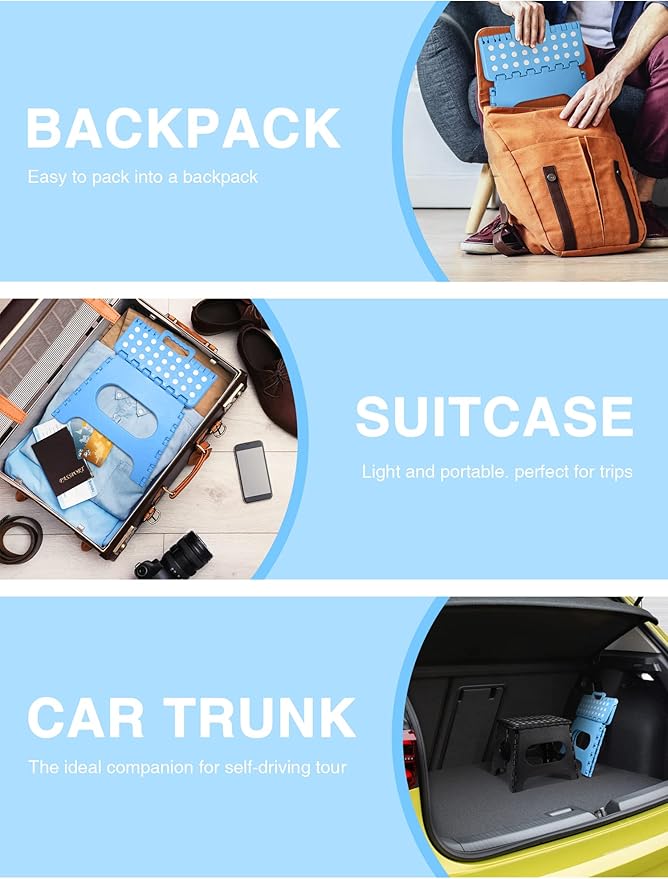 - ANTI-SLIP RUBBER BASE: Special rubber dots on the surface and an anti-slip black rubber strap on each foot provide maximum foot grip and comfort while preventing slippage. The folding step stool's unique, grip-dot textured surface makes it safe for everyone.