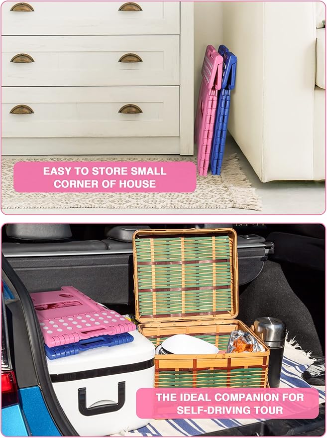 - Carrying Handle&Opens Easy - Ergonomic carrying handle is designed for easy folding and carrying. Just lift the handle, it's quickly and easily folds away for convenient storage. The step stool’s handle magically appears when the stool is folded flat. And allowing you comfortably carry it around so you can place it where you need it.